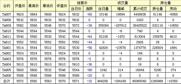 主力TA807合約當(dāng)日交易走勢