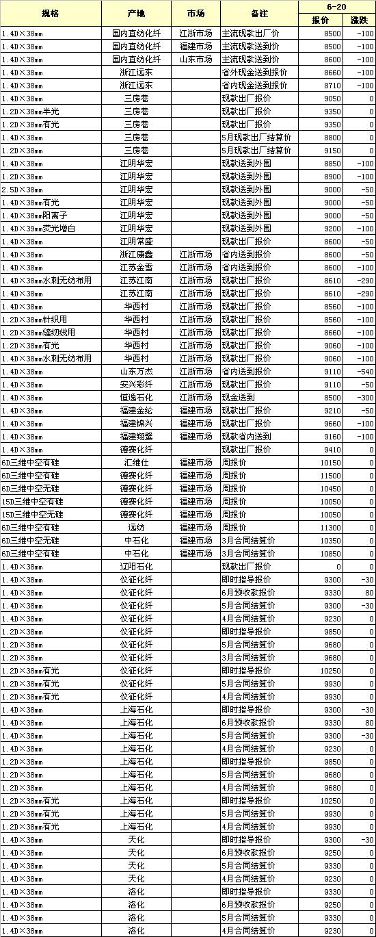 原料價(jià)格繼續(xù)走弱,對(duì)滌綸短纖支撐有限,今日滌綸短纖工廠報(bào)價(jià)下調(diào)幅度加大,至50-100元/噸,市場(chǎng)買氣依舊不足,市場(chǎng)多小單為主,普遍仍存下行預(yù)期。市場(chǎng)價(jià)格方面,江浙1.4D直紡主流報(bào)8550-8850元/噸出廠,實(shí)單商談或8500-8800元/噸,個(gè)別大單略低。福建滌綸短纖市場(chǎng)行情延續(xù)低迷態(tài)勢(shì),廠家報(bào)價(jià)弱穩(wěn)。1.4D直紡滌短主流報(bào)8600-8800元/噸短送位置,實(shí)單商談8500-8750元/噸。山東、河北直紡滌綸短纖市場(chǎng)繼續(xù)弱勢(shì)整理,1.4D直紡滌綸短纖商談重心跌至8600-8800元/噸,個(gè)別偏高8900元/噸附近。原料依舊偏弱調(diào)整,滌綸短纖缺乏利好刺激,市場(chǎng)心態(tài)依舊偏空,廠家?guī)齑嫔仙黠@。預(yù)計(jì)短期內(nèi)仍弱勢(shì)調(diào)整為主。