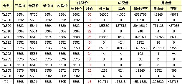 主力TA807合約當(dāng)日交易走勢(shì)