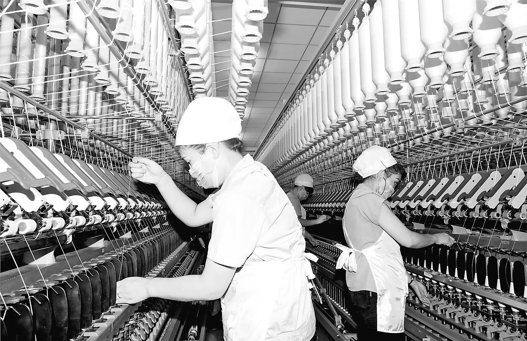 6月26日,來(lái)自巴楚縣的買(mǎi)熱亞木古麗·吐?tīng)柡?前)正在位于庫(kù)爾勒經(jīng)濟(jì)技術(shù)開(kāi)發(fā)區(qū)的新疆富麗震綸棉紡有限公司環(huán)綻紡車(chē)間工作。巴音郭楞蒙古自治州重點(diǎn)工業(yè)企業(yè)為精準(zhǔn)脫貧貢獻(xiàn)力量,僅紡織服裝業(yè)已吸納近千名農(nóng)村富余勞動(dòng)力就業(yè)。(標(biāo)題:精準(zhǔn)脫貧 富麗震綸吸納農(nóng)村富余勞動(dòng)力就業(yè))