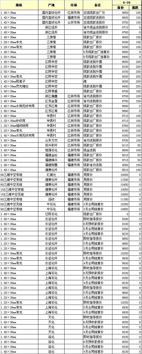 油價、PTA期貨連日延續(xù)強勢上攻,受原料價格強勢支撐,加上行業(yè)內(nèi)限產(chǎn)預期。今日江蘇工廠報價再度上調(diào)百元/噸,福建、北方等地陸續(xù)跟進。1.4D直紡主流報至8700-9050元/噸,實單成交逐步跟進,下游見勢多有一定補貨操作。福建滌綸短纖市場報價多有上調(diào)50-100元/噸。1.4D直紡滌短主流報8700-8850元/噸短送位置,實單商談或8600-8800元/噸。山東、河北直紡滌綸短纖市場價格也隨之上調(diào),1.4D直紡滌綸短纖商談重心至8700-8900元/噸。山東純滌紗市場價格基本平穩(wěn),32s純滌紗市場報價14000-14200元/噸,針織32S部分報在15500元/噸上下。原料強勢上臺,行業(yè)主流大廠限產(chǎn)檢修。預計后期滌綸短纖延續(xù)偏強走勢,關(guān)注下游接盤以及價格傳導情況。