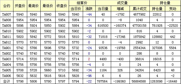 主力TA809合約當(dāng)日交易走勢(shì)