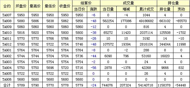 主力TA809合約當(dāng)日交易走勢