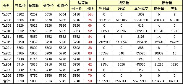 主力TA809合約當(dāng)日交易走勢(shì)