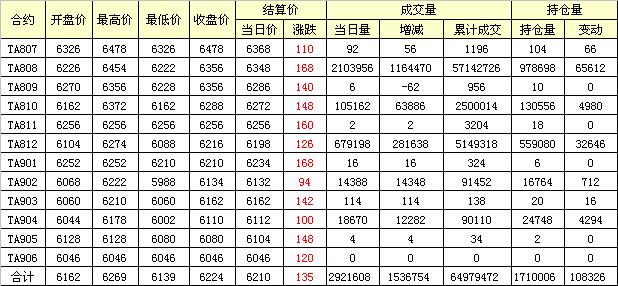 主力TA809合約當(dāng)日交易走勢(shì)
