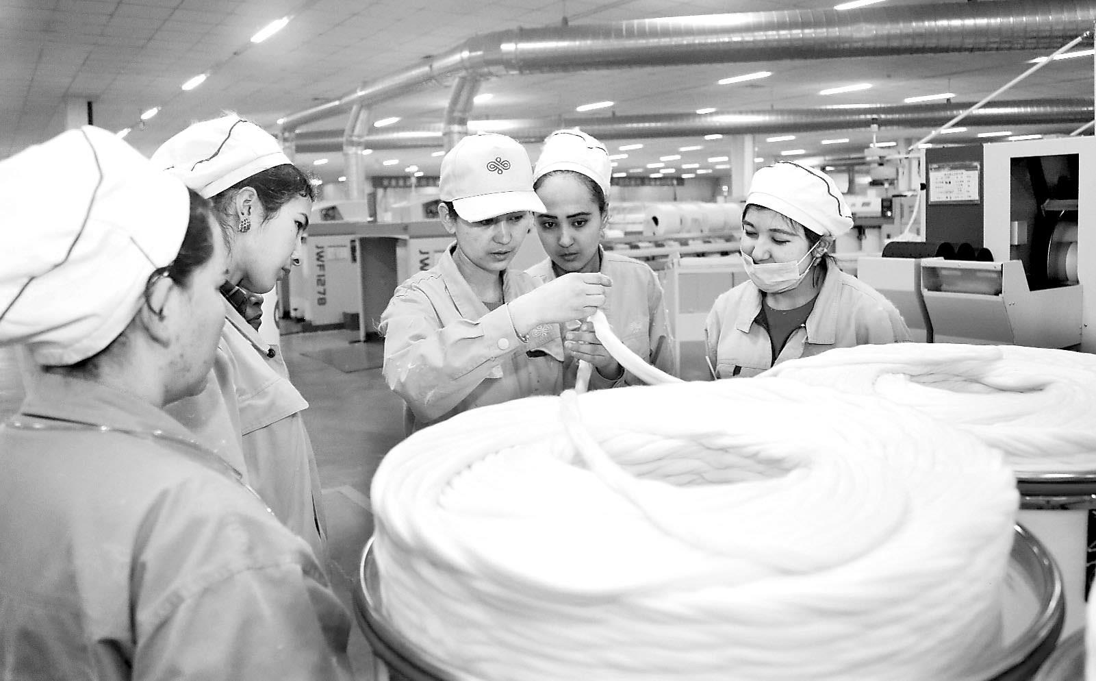 7月29日,疏勒縣阿拉力鄉(xiāng)海尼且村村民在山東如意集團(tuán)疏勒縣廠區(qū)學(xué)習(xí)梳棉技術(shù)。山東如意集團(tuán)疏勒縣廠區(qū)總投資2.6億元,就近就地解決2000余人就業(yè),為農(nóng)民增收脫貧開(kāi)辟新路。(標(biāo)題:新疆紡織產(chǎn)業(yè)帶動(dòng)就業(yè))