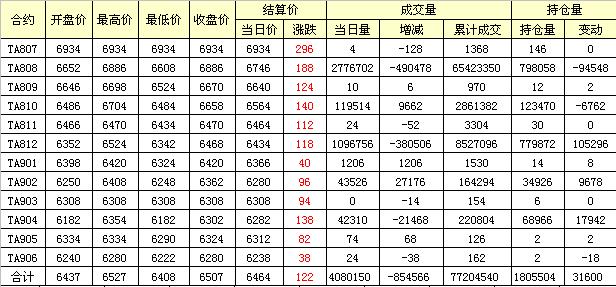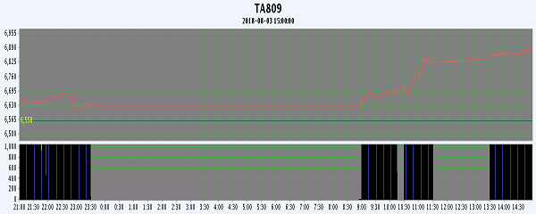 主力TA809合約當(dāng)日交易走勢(shì)