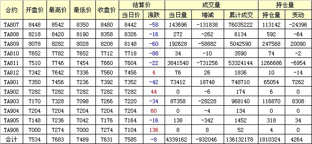 主力TA809合約當(dāng)日交易走勢