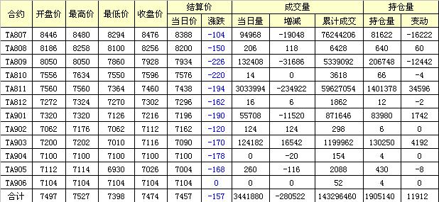 主力TA809合約當(dāng)日交易走勢(shì)