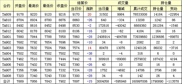 主力TA809合約當(dāng)日交易走勢