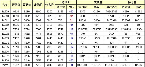 主力TA901合約當日交易走勢