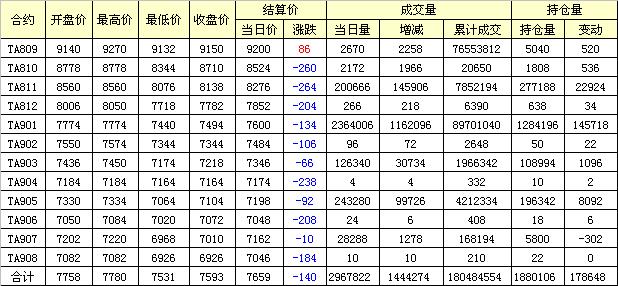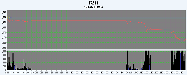 主力TA811合約當(dāng)日交易走勢(shì)