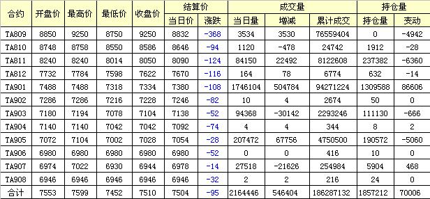 主力TA811合約當(dāng)日交易走勢(shì)
