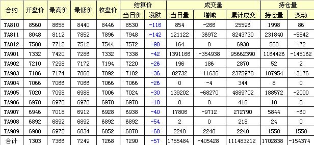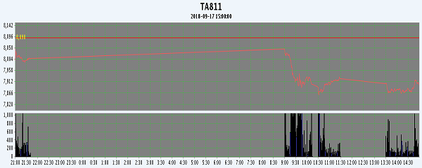 主力TA811合約當日交易走勢
