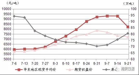而隨著PTA現(xiàn)貨價格站上9000元/噸關口,庫存也出現(xiàn)累積。進入9月后PTA期貨價格首先出現(xiàn)回落,而現(xiàn)貨端價格在主力工廠高價回購的挺價支撐下堅持到月中旬后快速跳水。