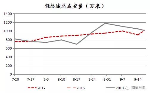 由輕紡城總成交量情況來看,今年8月中旬以來成交量較往年并沒有顯著降低,其中長絲和短纖布料比例也同樣維持在2:1-3:1之間。由此我們推斷實際上國內對終端紡織品消費需求并沒有發(fā)生實質性變化。然而從產(chǎn)業(yè)鏈負荷率變化能夠看出,目前江浙織機和聚酯工廠的負荷率均處在偏低水平。對比歷史數(shù)據(jù),江浙織機和聚酯開工率除春節(jié)期間外年內也曾經(jīng)出現(xiàn)數(shù)次降負,可并未持續(xù)太長時間,且10-11月均處于偏高水平。