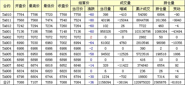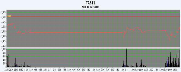 主力TA811合約當(dāng)日交易走勢(shì)
