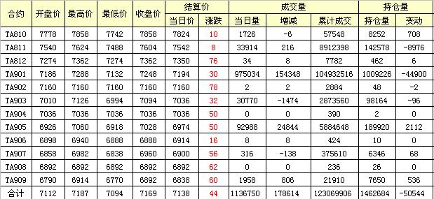 主力TA811合約當(dāng)日交易走勢(shì)