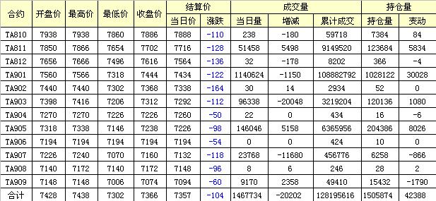 主力TA811合約當(dāng)日交易走勢