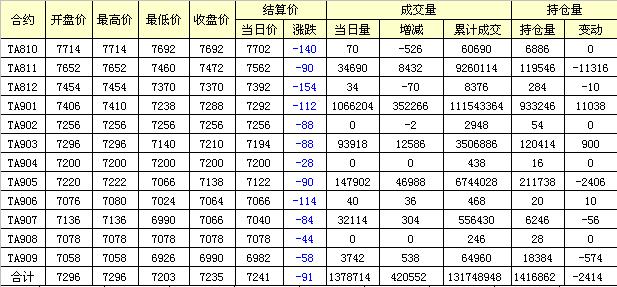 主力TA811合約當(dāng)日交易走勢