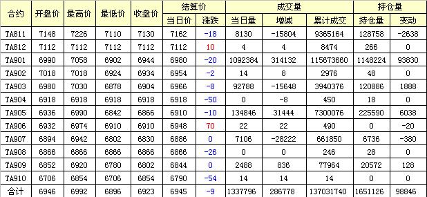 主力TA901合約當(dāng)日交易走勢(shì)