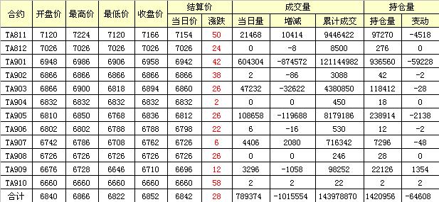 主力TA901合約當日交易走勢