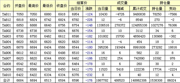 主力TA901合約當(dāng)日交易走勢(shì)