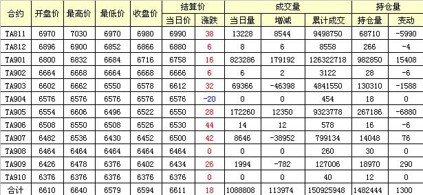 主力TA901合約當(dāng)日交易走勢