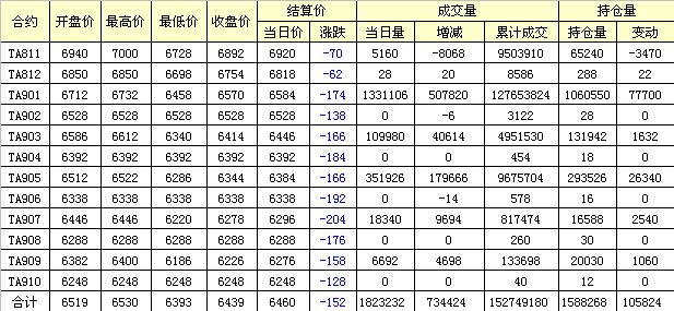 主力TA901合約當日交易走勢