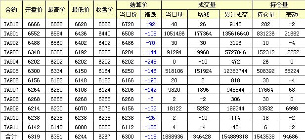 主力TA901合約當(dāng)日交易走勢
