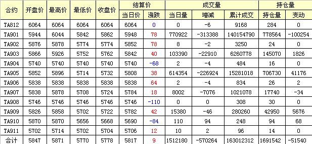 主力TA901合約當(dāng)日交易走勢(shì)