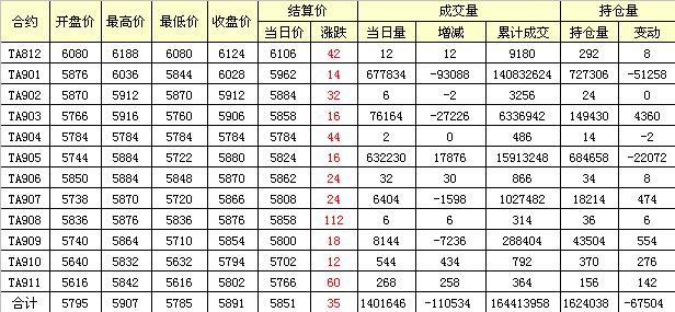 主力TA901合約當日交易走勢