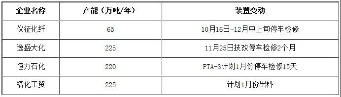 其中,年內(nèi)PTA檢修基本結(jié)束,近期檢修計(jì)劃如表格所示,檢修力度較11月明顯下滑,另外市場(chǎng)存在福化工貿(mào)重啟預(yù)期,若裝置重啟或進(jìn)一步加劇1季度累庫(kù)幅度。據(jù)2017-2018年裝置檢修情況來(lái)看,1季度PTA檢修集中度較低,這導(dǎo)致PTA1季度供應(yīng)量相對(duì)穩(wěn)定。