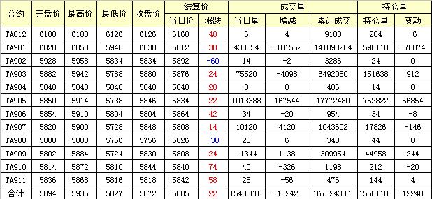主力TA901合約當(dāng)日交易走勢