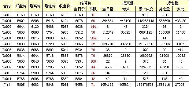 主力TA901合約當(dāng)日交易走勢