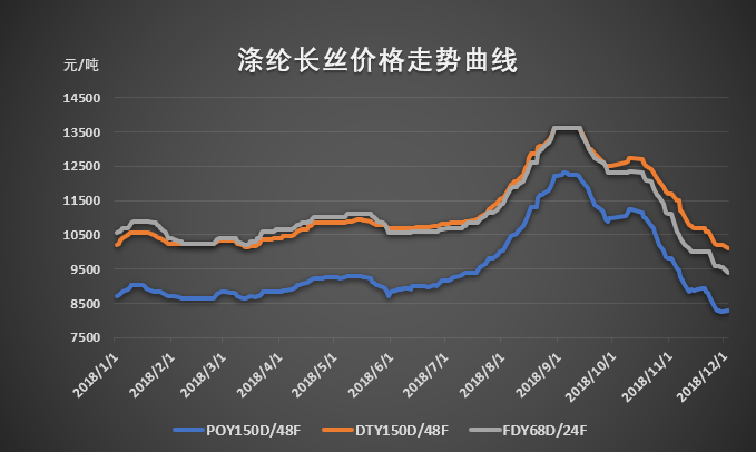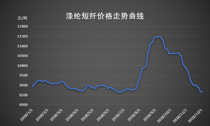 但出于對經(jīng)濟下滑的擔(dān)憂,石油價格再度暴跌,商品期貨恐慌下跌態(tài)勢拖累市場心態(tài),滌綸短纖重回下跌走勢。月底原料價格超跌反彈,但出于對后市預(yù)期的不確定性,業(yè)者操盤心態(tài)整體謹(jǐn)慎,滌綸短纖市場逐步趨穩(wěn)。至月底收盤,江浙1.4D*38mm常規(guī)貨源主流成交8600-8700元/噸現(xiàn)款出廠,本月均價9080元/噸,環(huán)比下跌12.74%。12月原油價格存在反彈可能,或?qū)埘ピ隙诵纬梢欢ㄖ危K端訂單疲軟限制聚酯產(chǎn)銷,原料反彈動力預(yù)計不強。