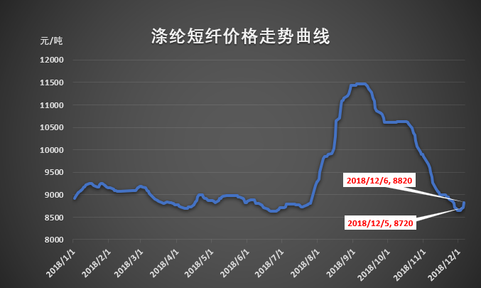 受中美貿(mào)易戰(zhàn)休戰(zhàn)利好,原料行情修復性反彈,滌綸短纖價格也跟隨上漲。