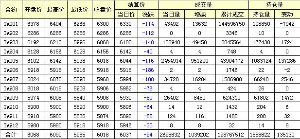主力TA901合約當(dāng)日交易走勢(shì)