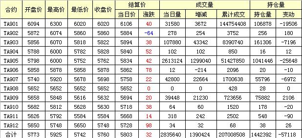 主力TA901合約當(dāng)日交易走勢(shì)