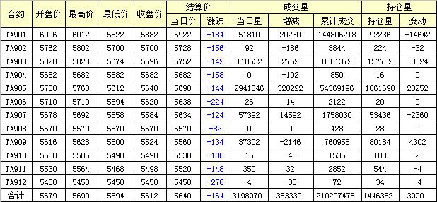 主力TA901合約當(dāng)日交易走勢(shì)