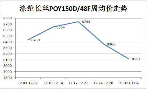 錦綸:本周恰逢元旦小假期,但節(jié)前節(jié)后錦綸未見(jiàn)利好,節(jié)后價(jià)格持續(xù)下滑。隨著上游原料持續(xù)下滑,成本端利好支撐不足,錦綸絲廠家裝置開(kāi)工穩(wěn)定,現(xiàn)貨供應(yīng)充裕,但下游實(shí)際需求跟進(jìn)依舊偏弱,廠家走貨稍顯吃力,各方對(duì)后市信心不足,實(shí)單成交可靈活商談。