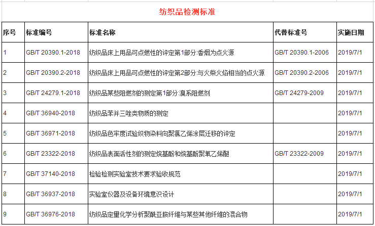 紡織類標(biāo)準(zhǔn)共有43項(xiàng),其中紡織檢測技術(shù)標(biāo)準(zhǔn)9項(xiàng)、染料檢測標(biāo)準(zhǔn)6項(xiàng)、原料標(biāo)準(zhǔn)11項(xiàng)、紡機(jī)標(biāo)準(zhǔn)5項(xiàng)、皮革標(biāo)準(zhǔn)5項(xiàng)、鞋類標(biāo)準(zhǔn)3項(xiàng)、服裝標(biāo)識標(biāo)準(zhǔn)4項(xiàng)。