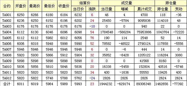 主力TA905合約當(dāng)日交易走勢