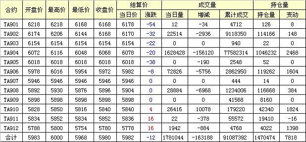 主力TA905合約當(dāng)日交易走勢
