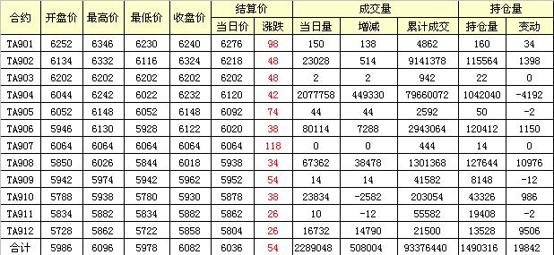 主力TA905合約當(dāng)日交易走勢(shì)