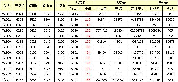 主力TA905合約當(dāng)日交易走勢