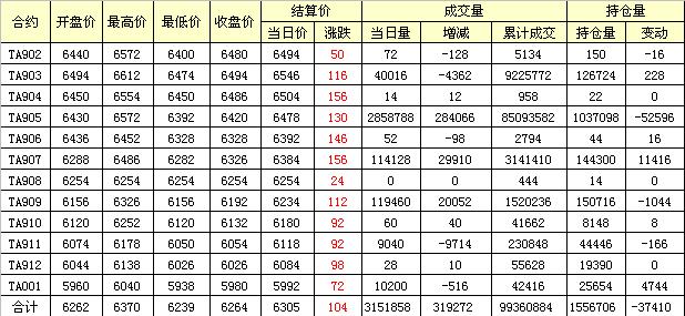 主力TA905合約當(dāng)日交易走勢