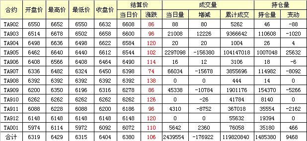 主力TA905合約當日交易走勢