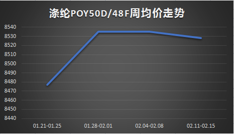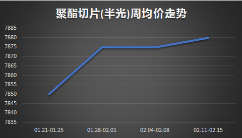 聚酯切片:本周聚酯切片窄幅震蕩。截止到本周四江浙半光切片價(jià)格7925元/噸,較節(jié)前同期上漲50元/噸;有光切片價(jià)格7875元/噸,較節(jié)前同期上漲25元/噸。本周半光切片均價(jià)7925元/噸,較上周上漲0.63%;有光切片均價(jià)7869元/噸,較上周上漲0.24%。節(jié)后歸來,原料價(jià)格漲后回落,切片成本暫無利好,加之目前切片下游及終端工廠尚未復(fù)工,場內(nèi)交投清淡,受此影響,切片工廠暫無明顯調(diào)價(jià)意愿,周內(nèi)多報(bào)價(jià)穩(wěn)定,場內(nèi)商談重心變化不大,切片窄幅震蕩。