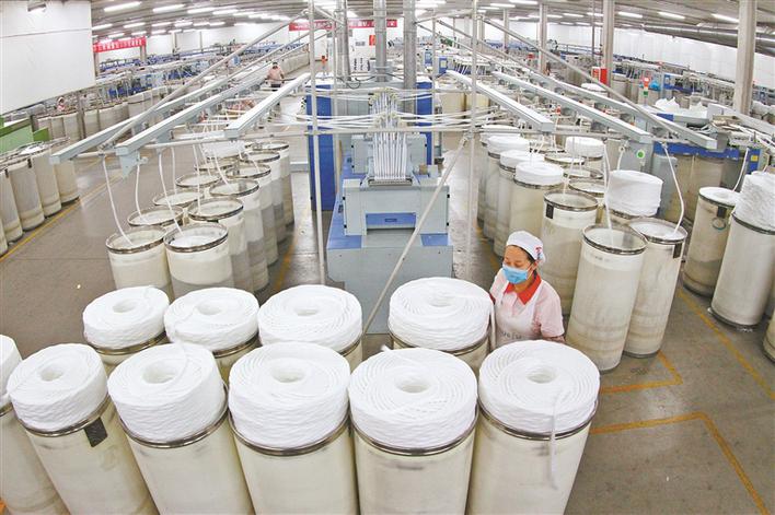2月20日,新疆六孚紡織工業(yè)園有限公司員工正在生產(chǎn)線上工作。 據(jù)統(tǒng)計,今年1月公司產(chǎn)量已達1100余噸,實現(xiàn)產(chǎn)值4700多萬元,產(chǎn)值同比增長70%以上。 據(jù)介紹,1季度公司生產(chǎn)計劃2800噸,目前日均產(chǎn)量在48噸左右,在加緊生產(chǎn)的同時,采取“抓大不放小”的策略,積極開拓市場,力爭實現(xiàn)“開門紅”。
